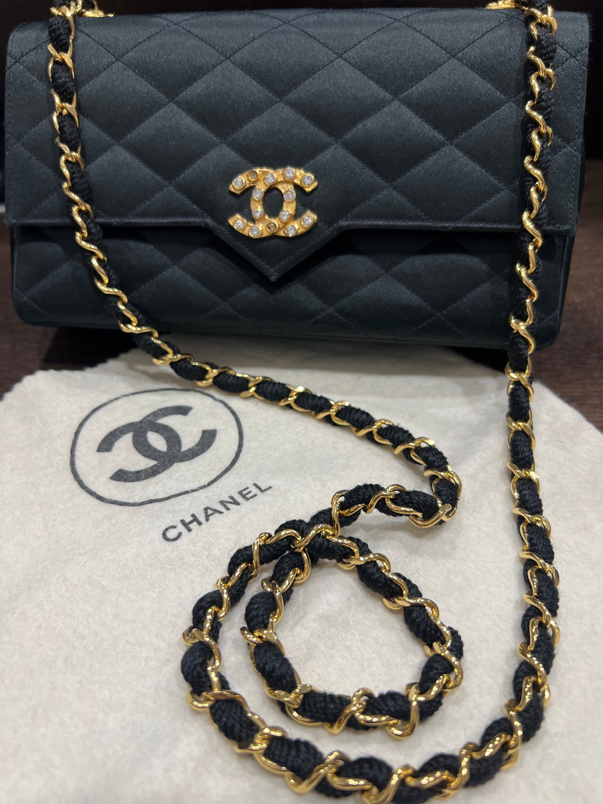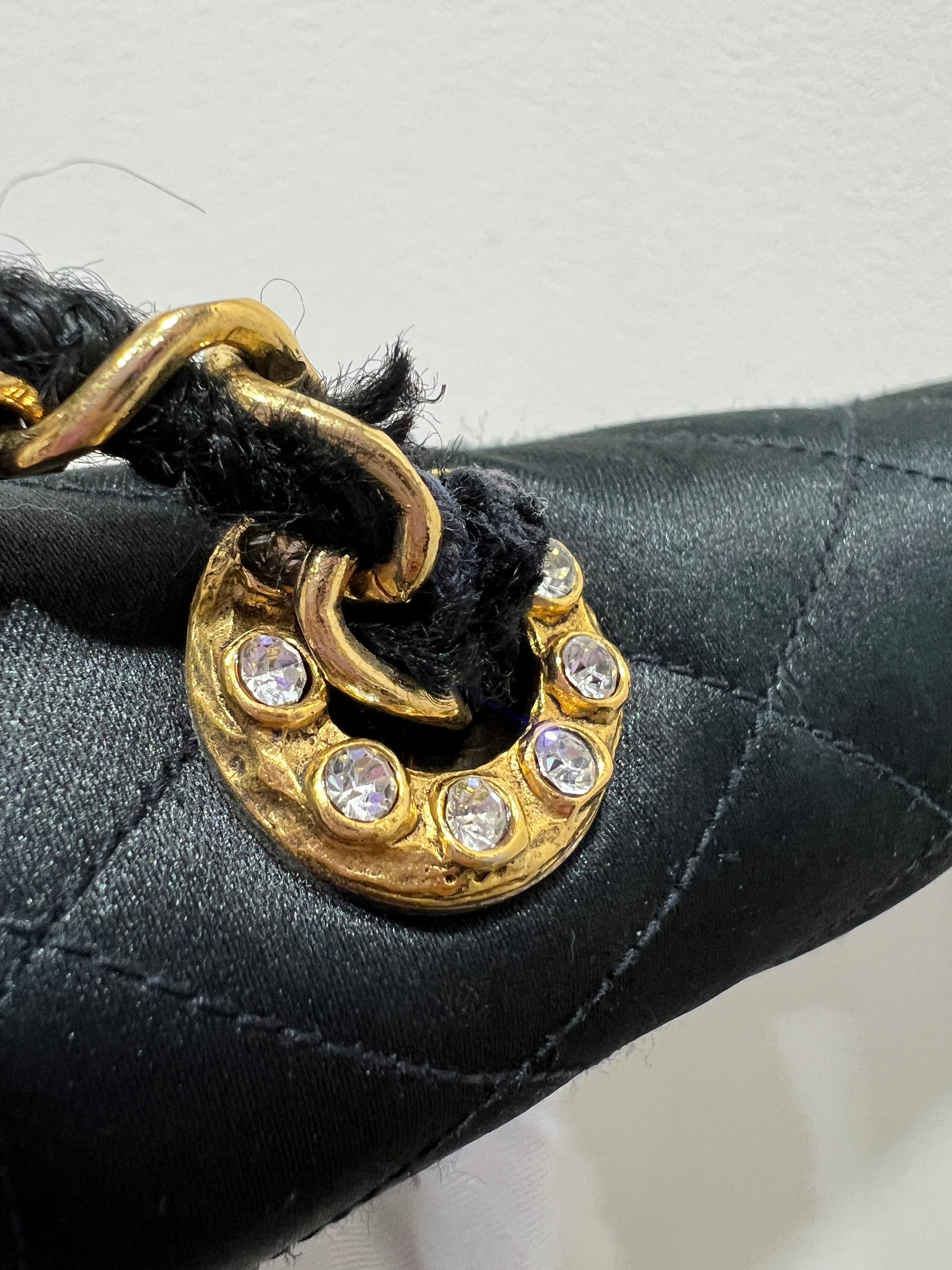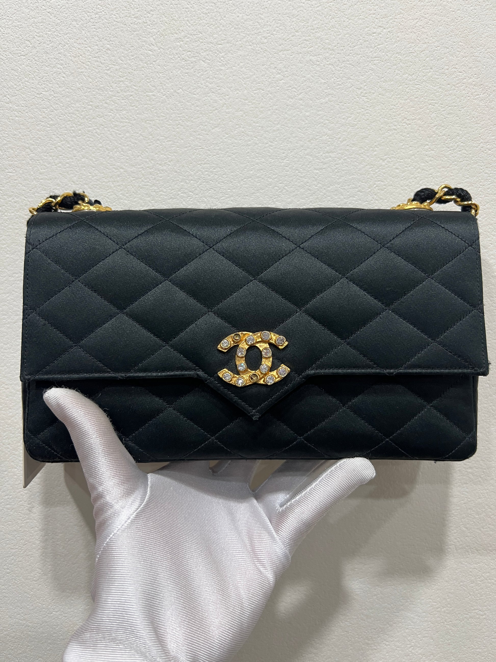 CHANEL Vintage Satin Crystal Embellished Pointed Flap Gold Chain Year 1986-1988