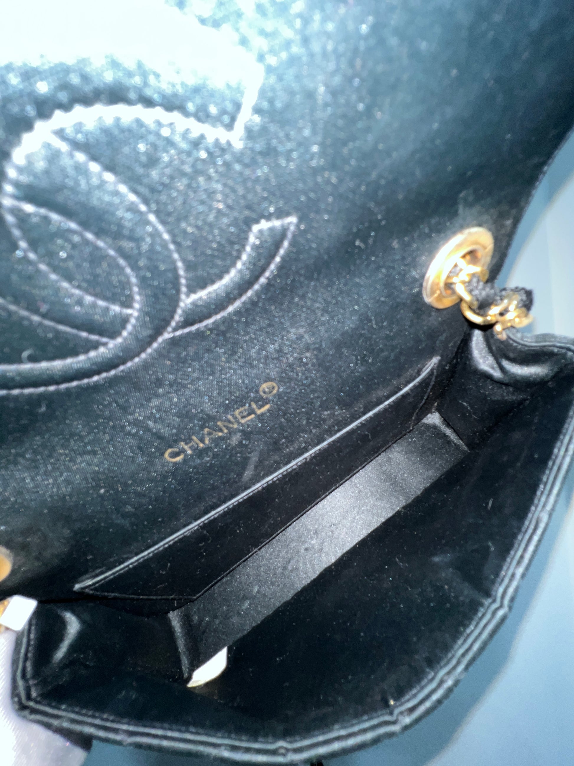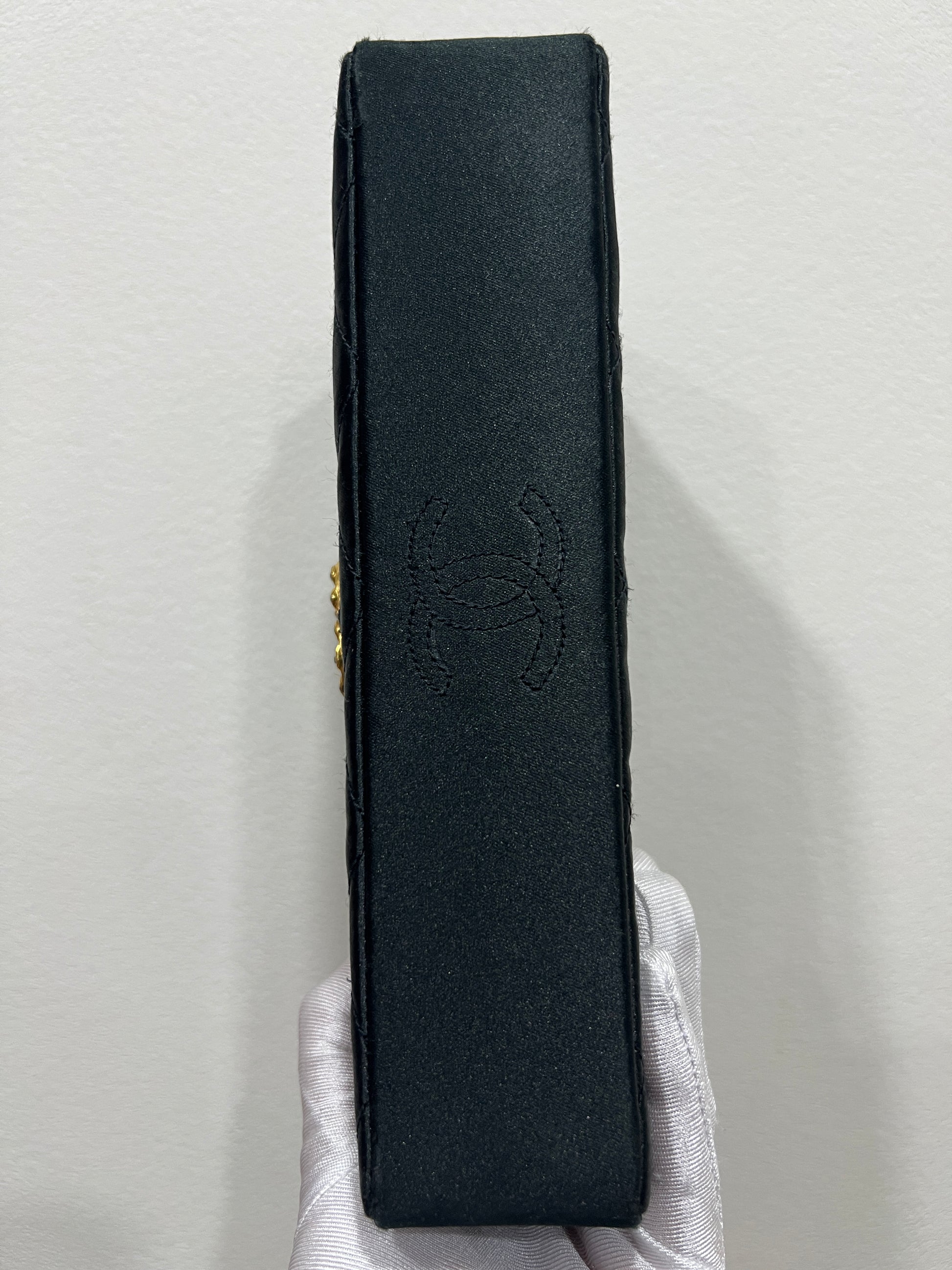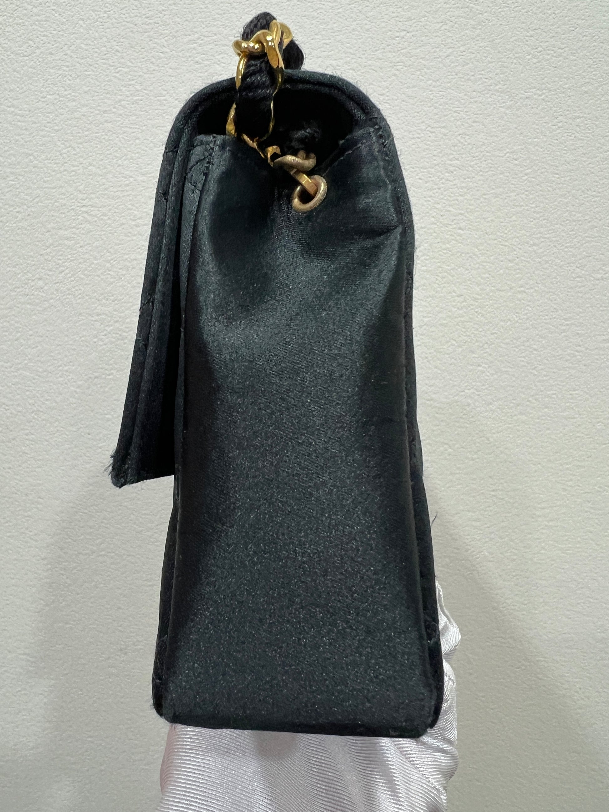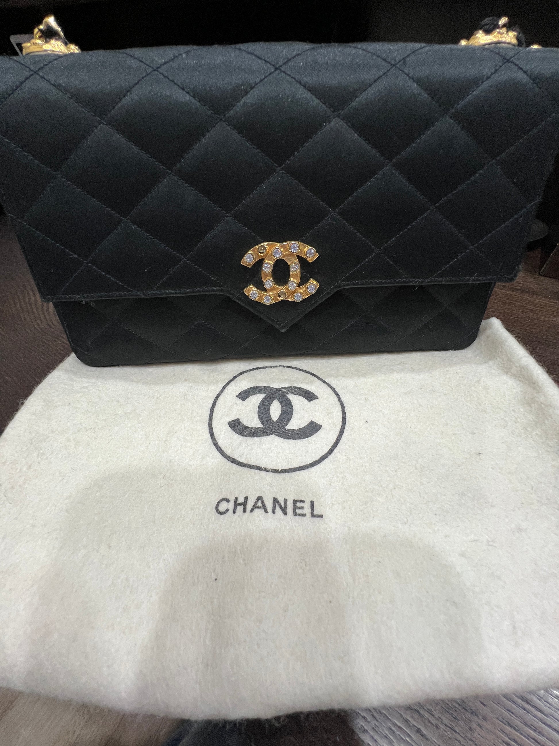 CHANEL Vintage Satin Crystal Embellished Pointed Flap Gold Chain Year 1986-1988