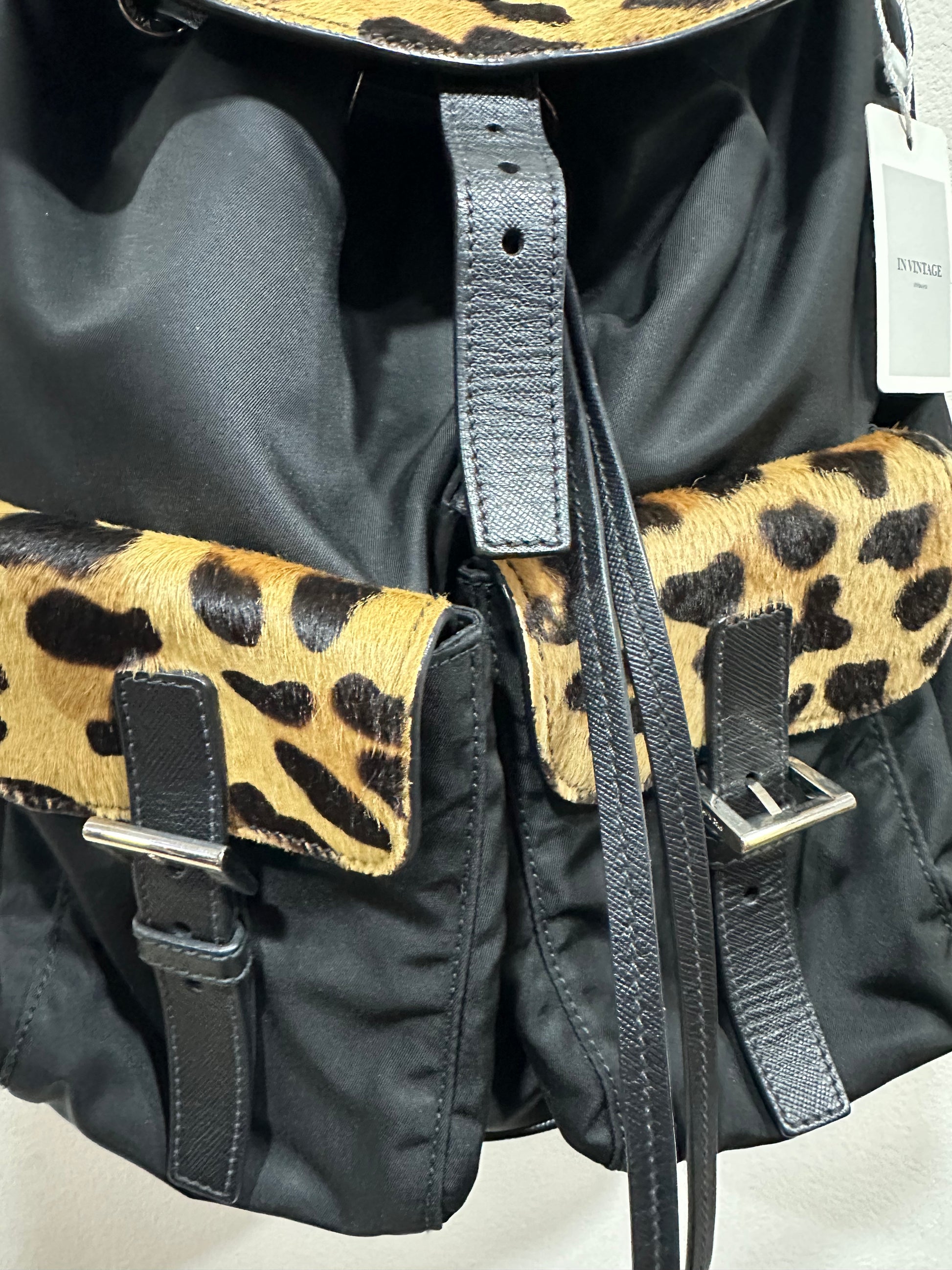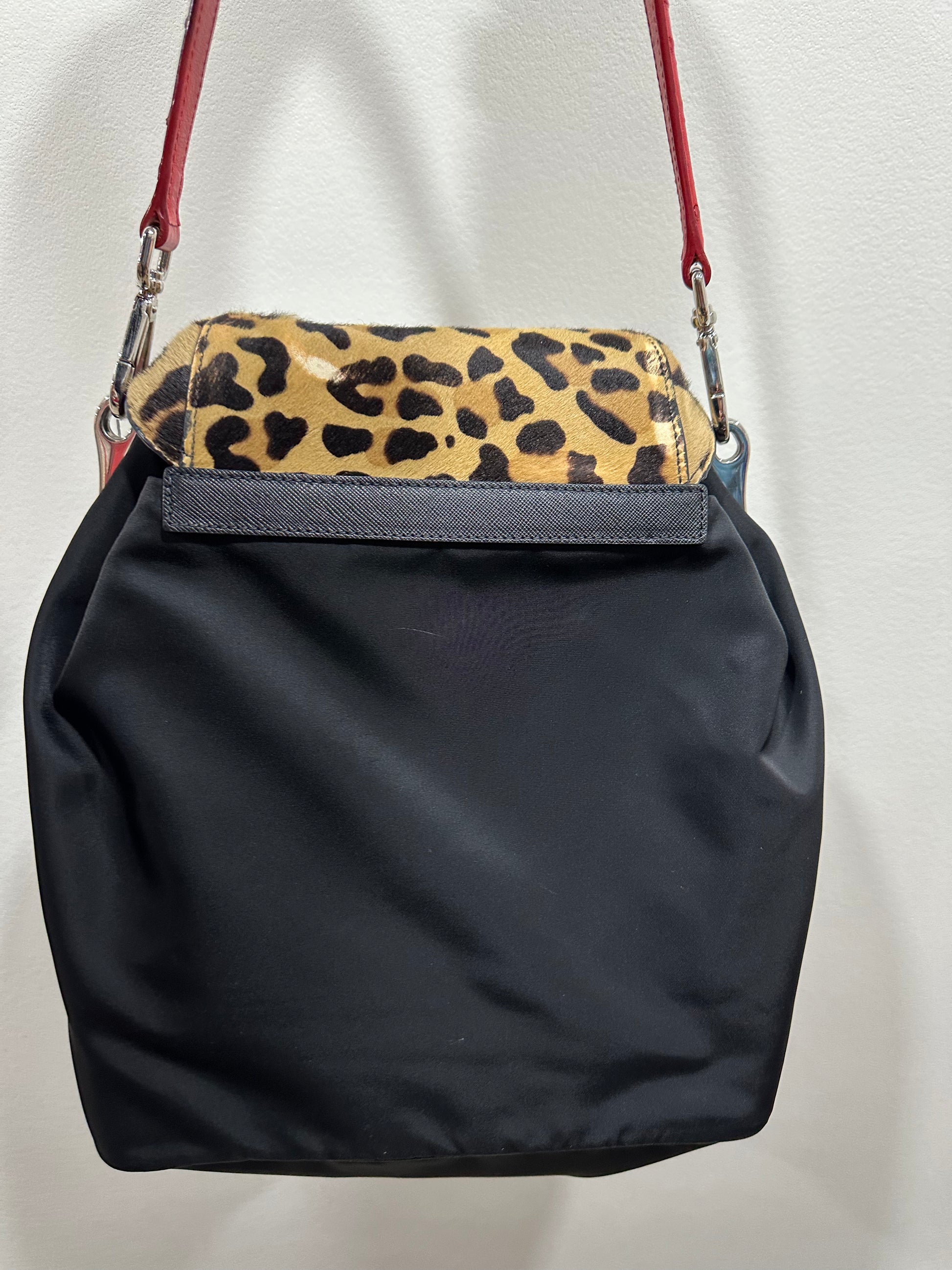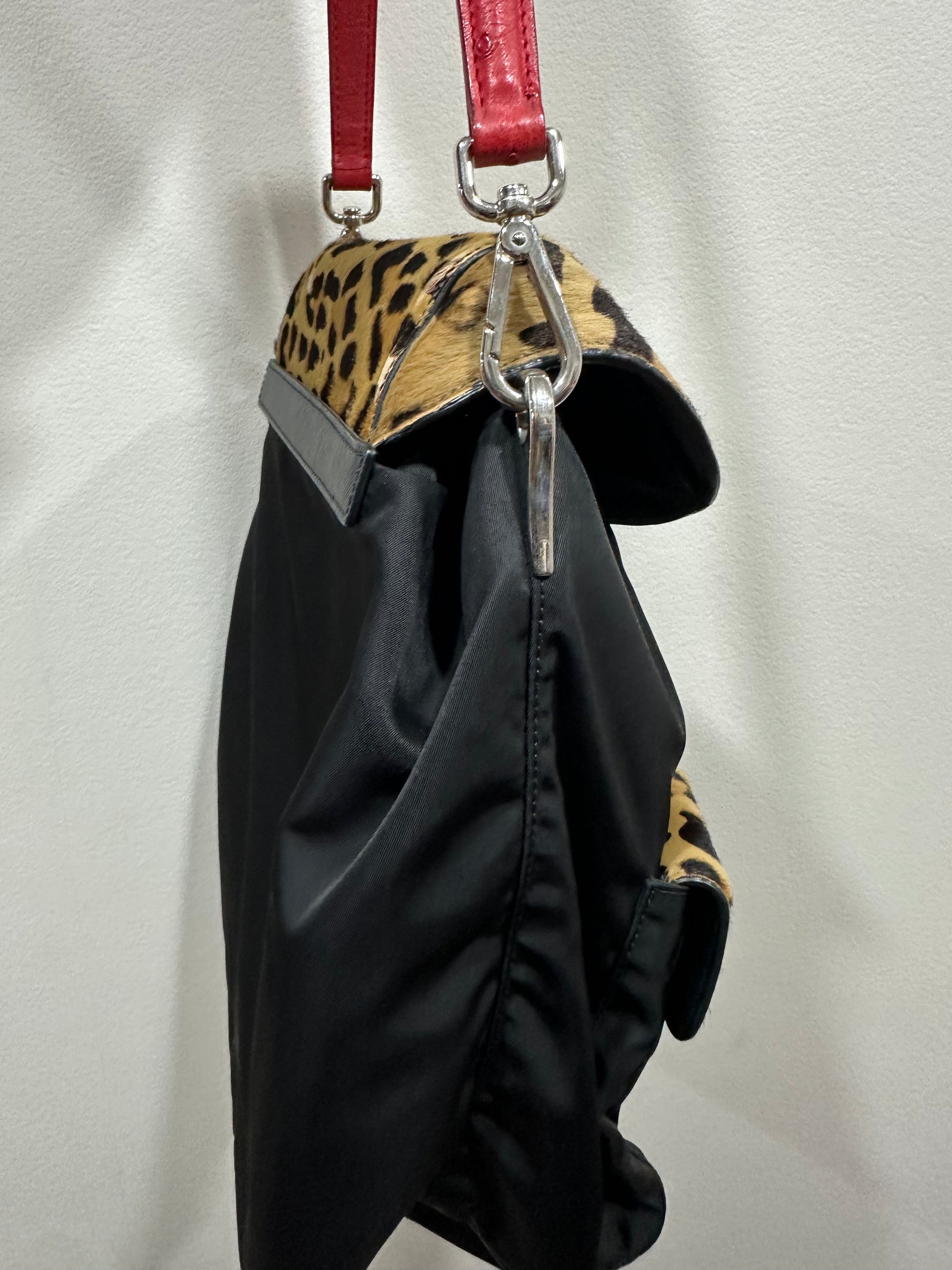 PRADA Shoulder Bag Nylon Leather Pony Hair Ostrich leather