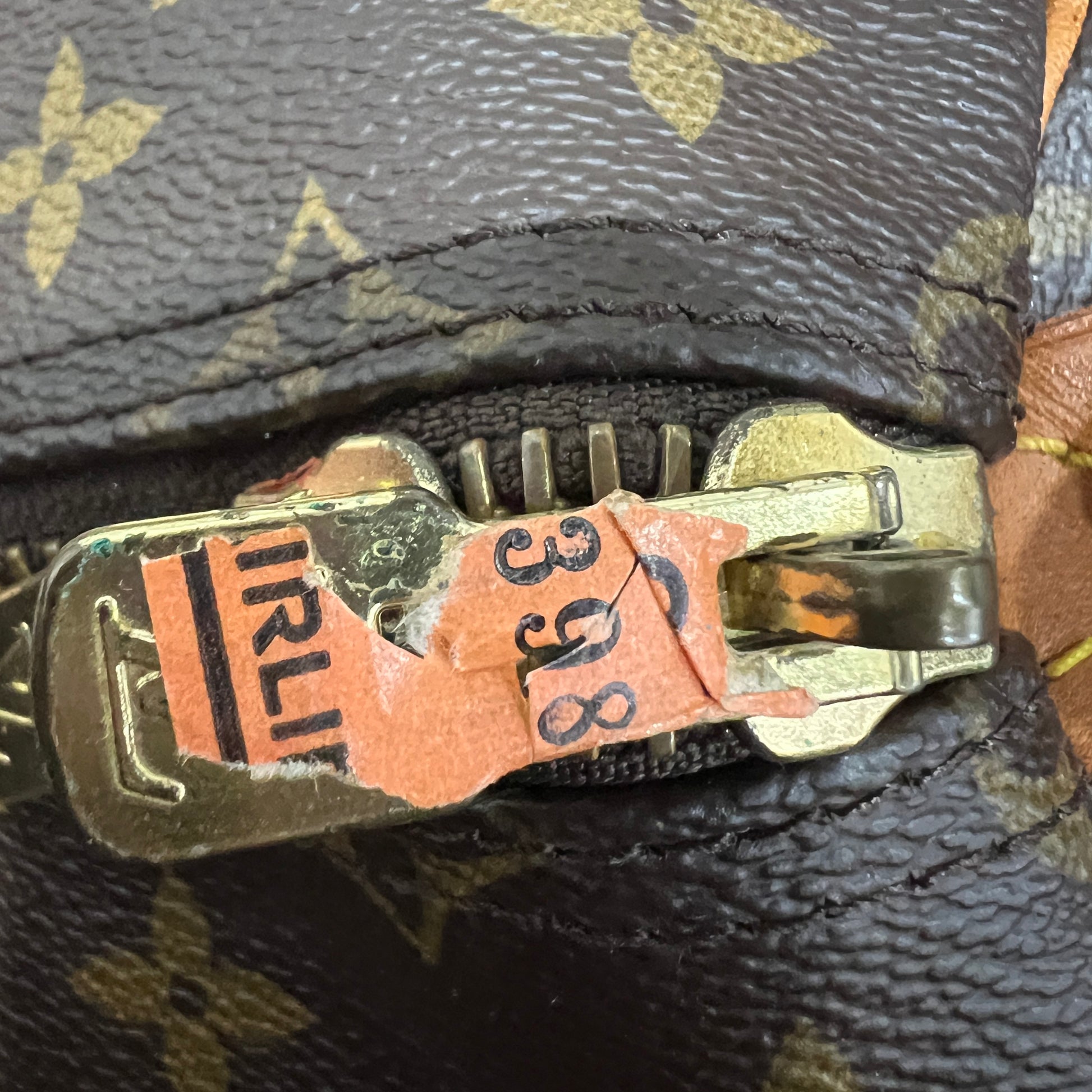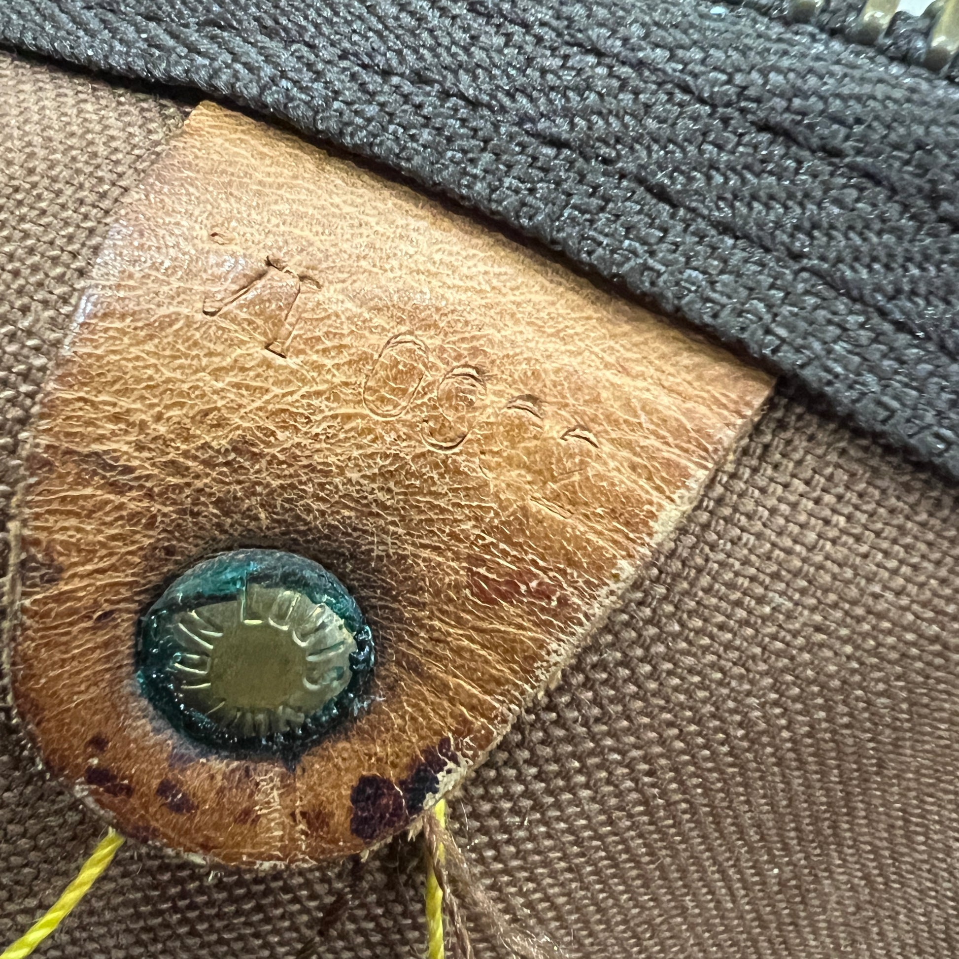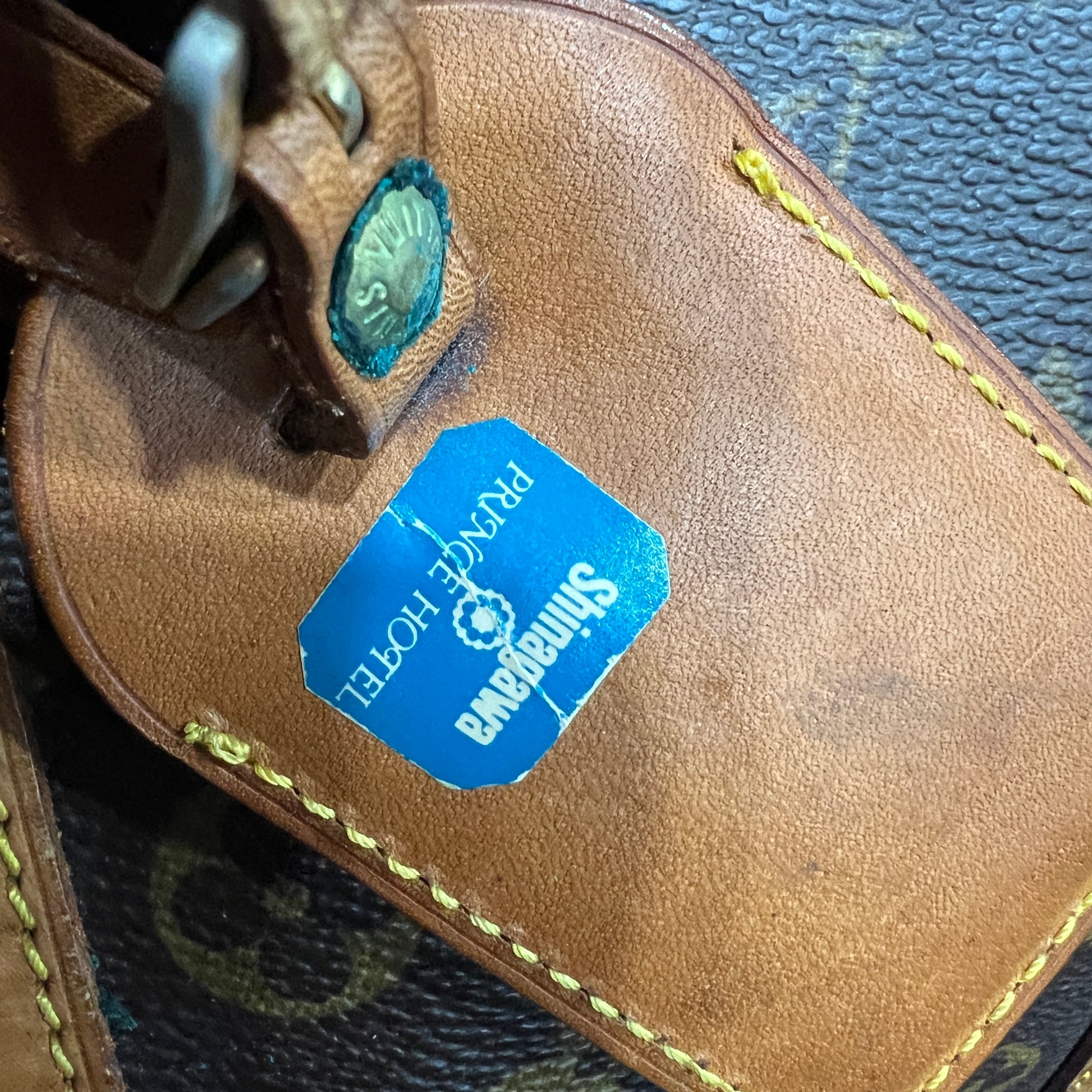 There are some stickers on the bag tag leather and also the zipper pulls, please check the photos.