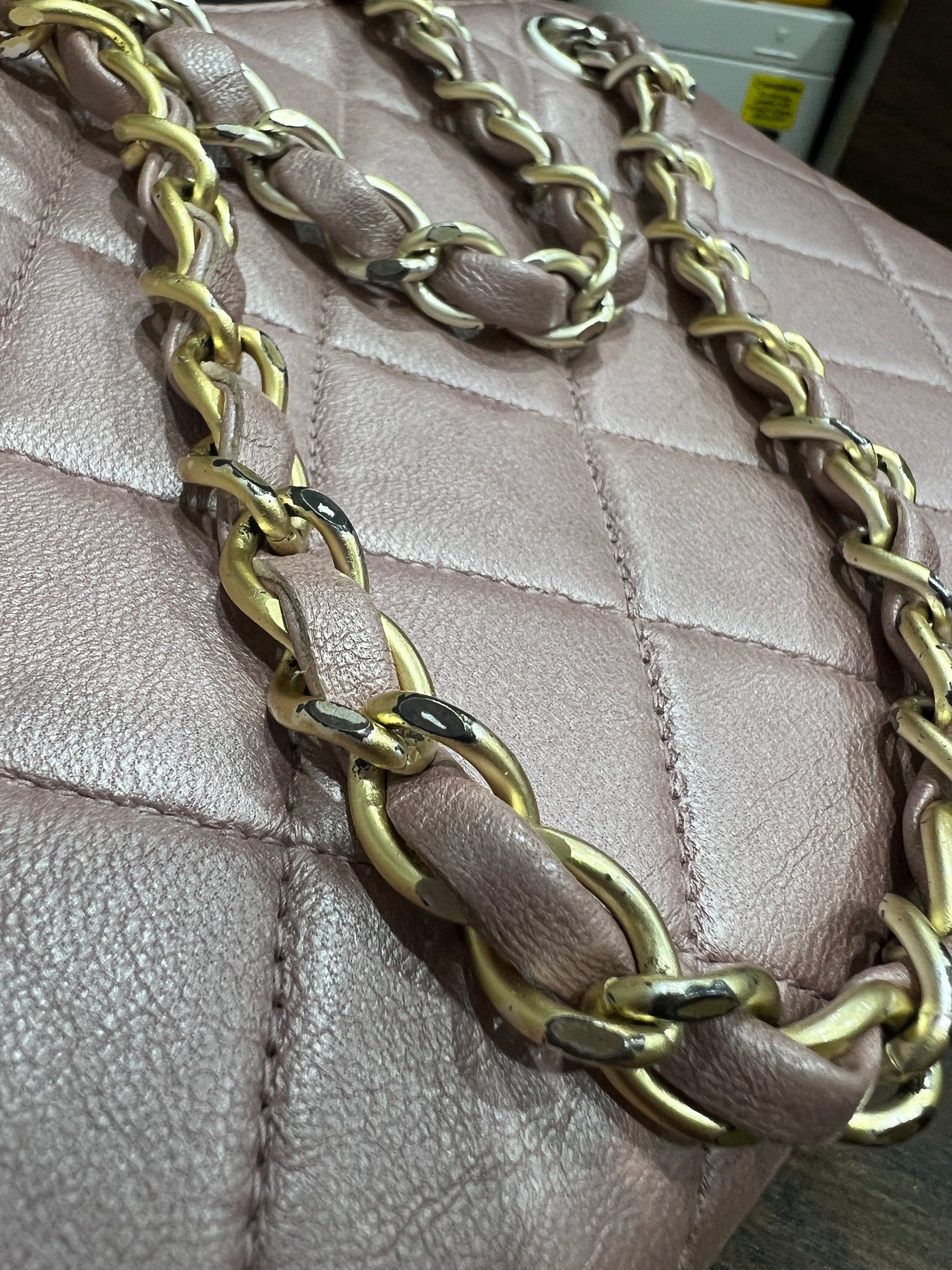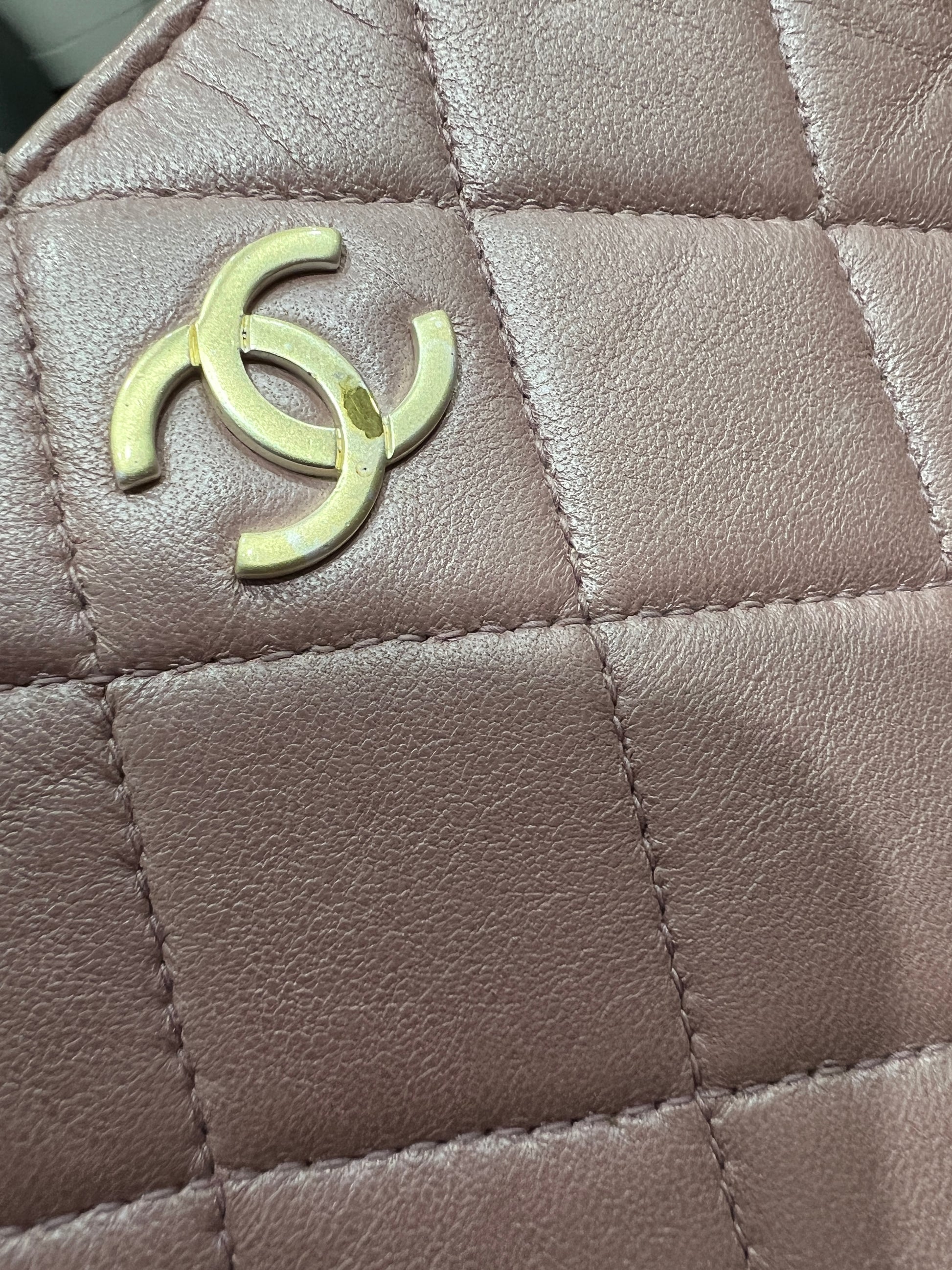 CHANEL pink lambskin shoulder bag